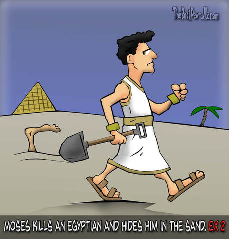 This temptation will dog God’s people throughout their history. It still does. By responding to oppression with oppression, Moses has become the agent of death rather than the agent of YHWH. He is using his power the way Pharaoh uses it. Killing is not the path to saving. Moses knows his actions are wrong: furtively checking that no one is watching, and hiding the body in the sand (2:12).