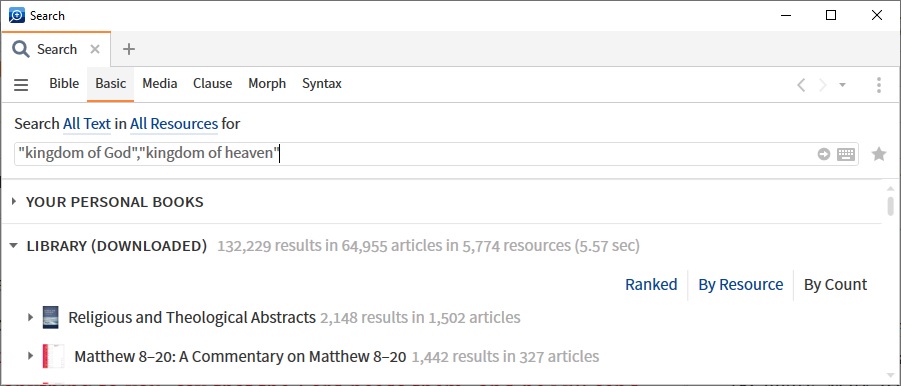 In fact, the software opens up possibilities that have never existed before. Logos can search my entire library (around 40 bookshelves) for a phrase such as kingdom of God in a similar time it would take you to search one page manually. That opens up ways to identify cognate expressions and then compare/contrast how different groups have understood the kingdom in different eras: Judaica, church fathers, middle ages, reformers, enlightenment, Catholic, Orthodox, Evangelical, … What would have been years of research could be a few mouse clicks today.
